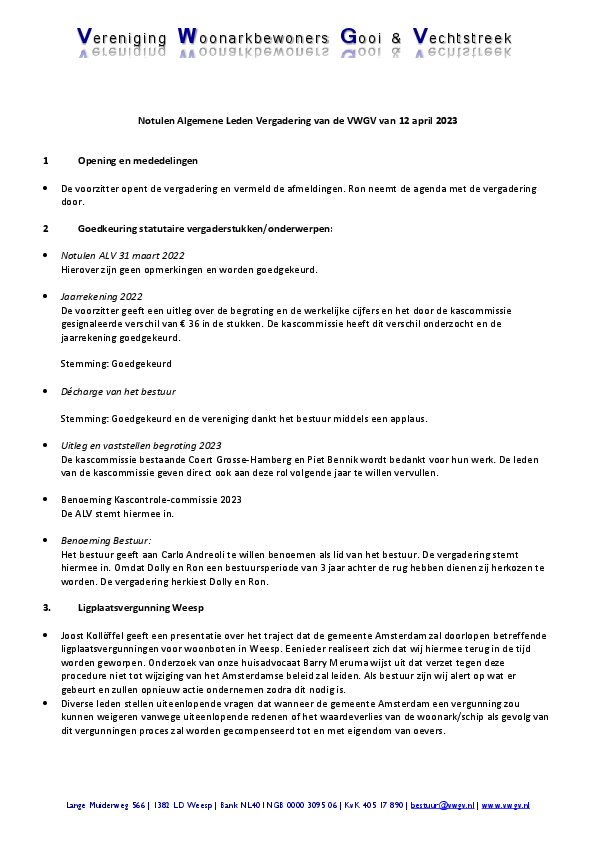 Hieronder vindt je de downloads van de documenten van de laatste gehouden ALV.